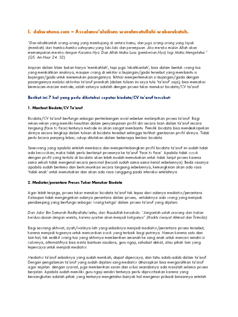 Format Biodata Taaruf Doc Document