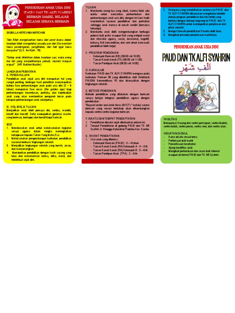 Contoh Brosur Pendaftaran Paud Dan Tk Islam Terpadu Full
